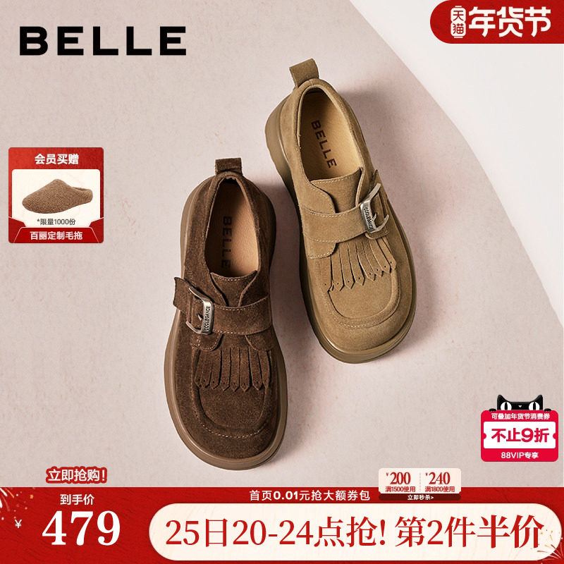 百丽厚底增高复古加绒乐福勃肯棉鞋女商场冬季雪地靴毛毛单鞋子预