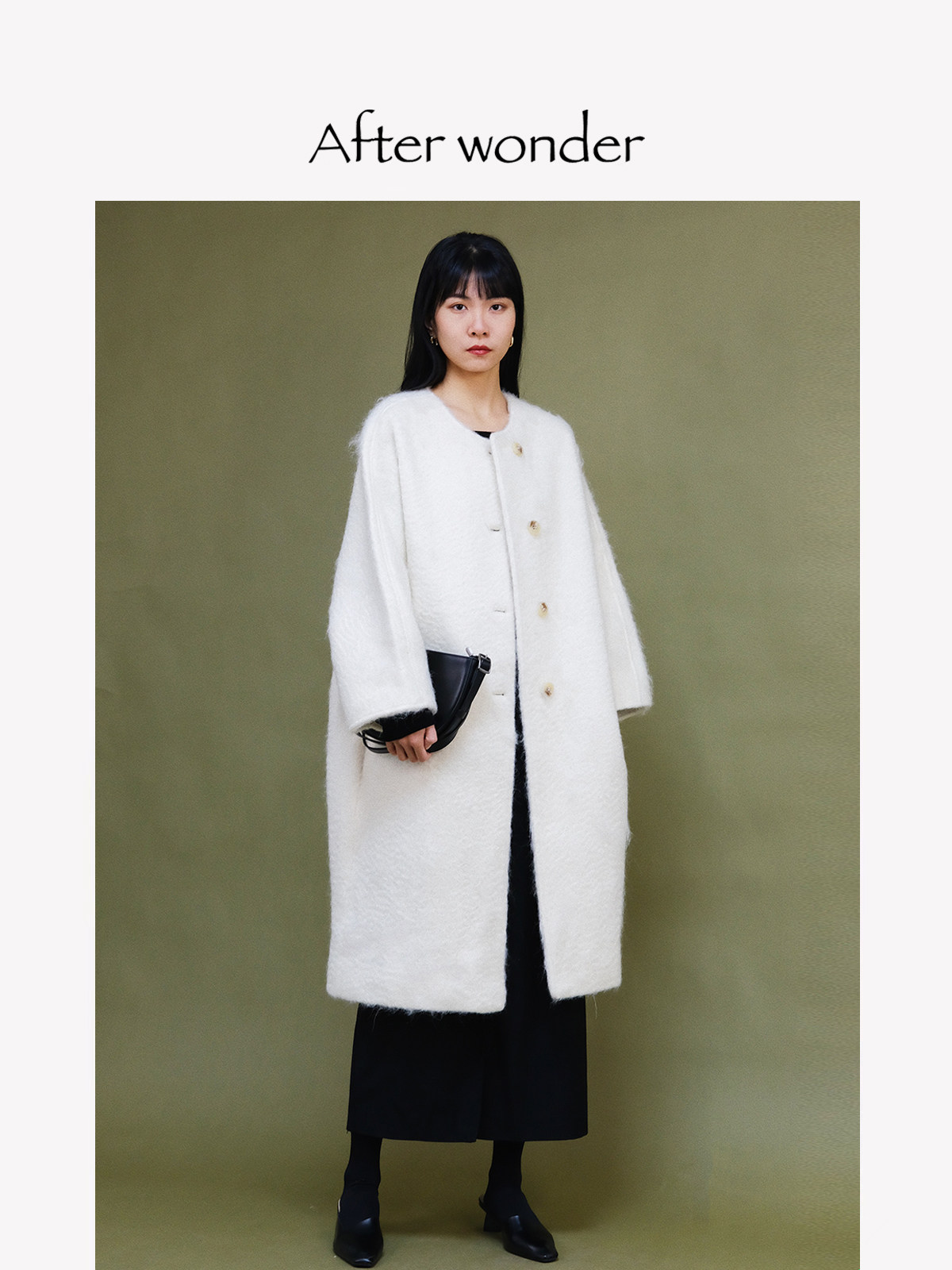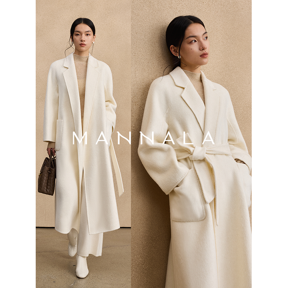 MANNALA丨“白露大衣”经典极简定纺羊驼苏丽中长款白色大衣Q6382