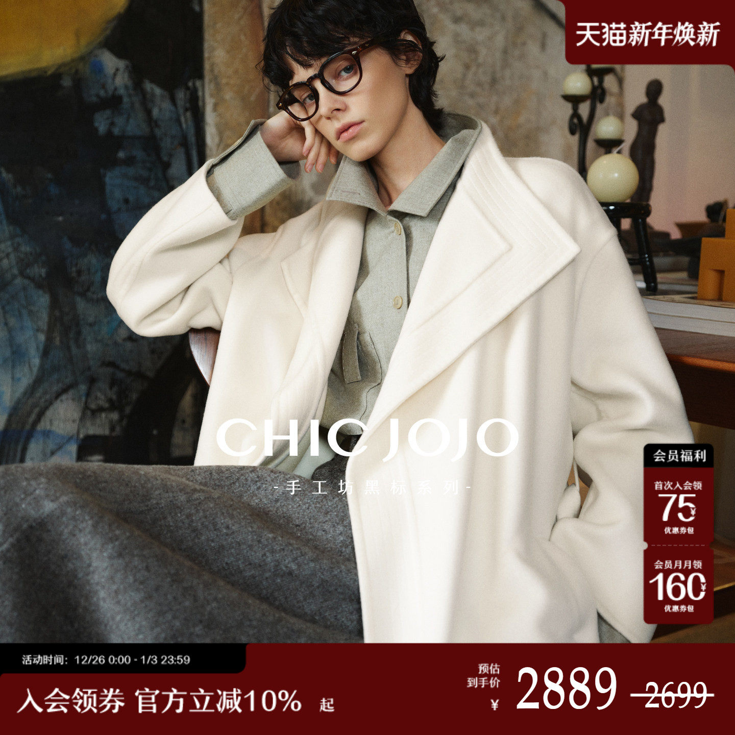 【雾杳绒歌】CHICJOJO白色大衣外套女25冬新款羊绒中长款双面呢