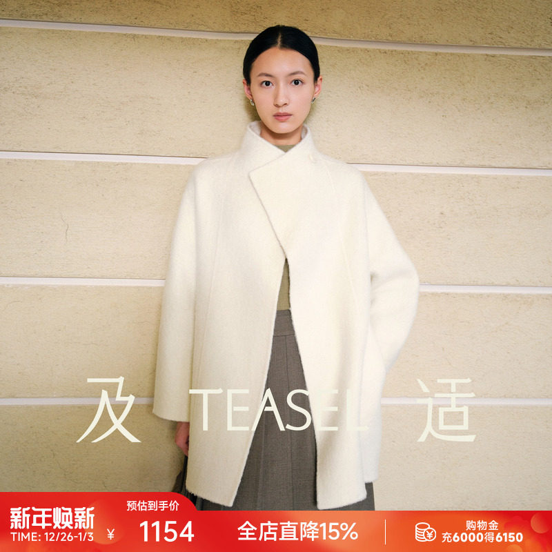 TEASEL「静谧之白」中长款立领秘鲁苏力羊驼毛蓬松温柔白色大衣