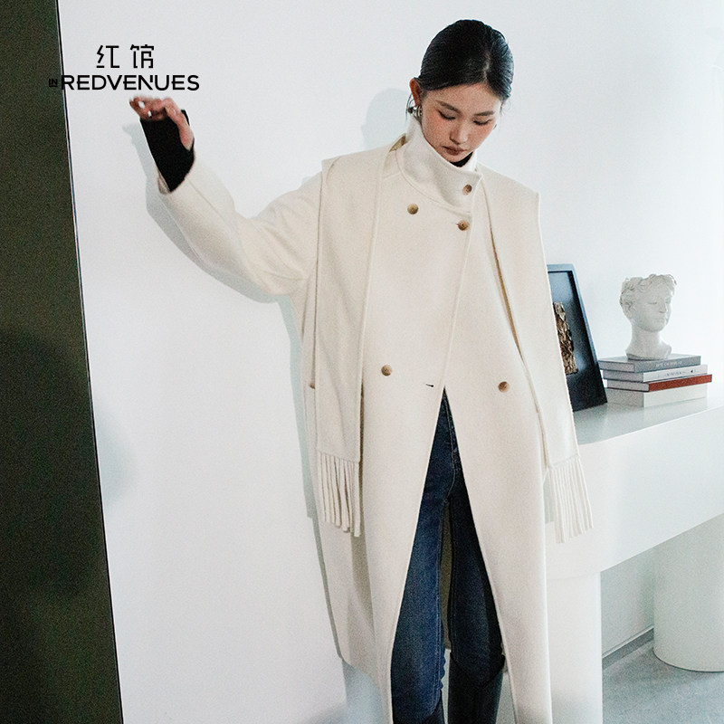 红馆|设计师款双面呢大衣女25冬新款绵羊毛大衣外套长款白色大衣