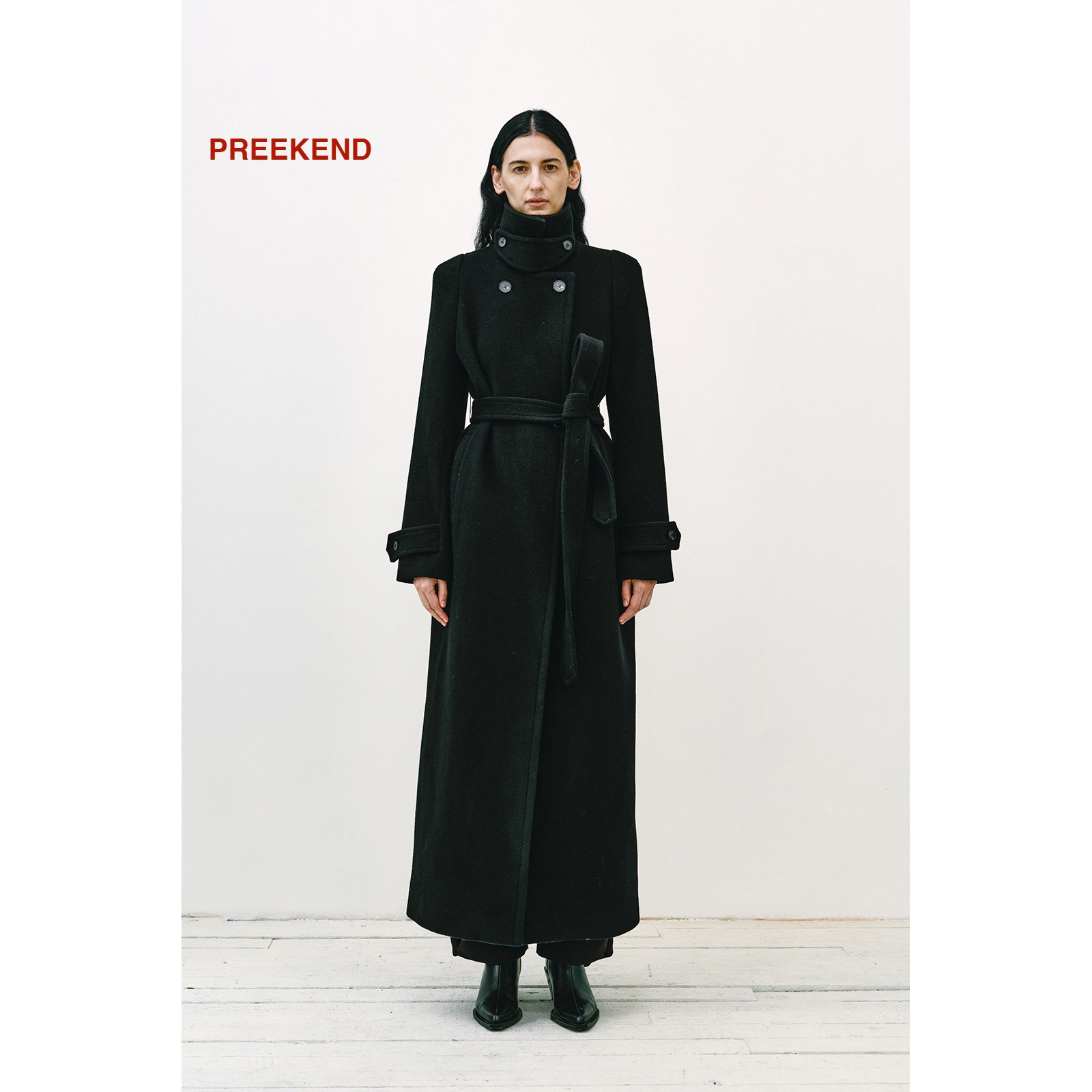- 收腰长款毛呢大衣女