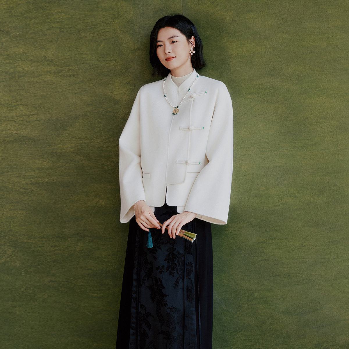 歌蒂诗2025秋专柜新款优雅新中式羊毛羊绒白色大衣外套 8F10D1556