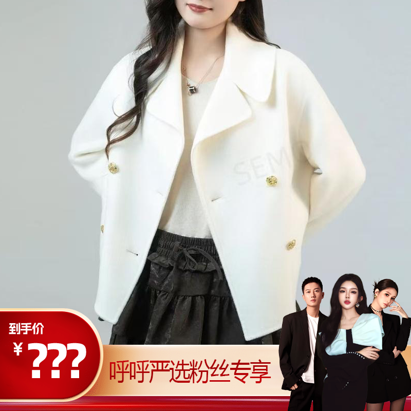 杨小卷 富家千金 狐狸毛袖1OO羊毛白色大衣短款小香风双面呢外套