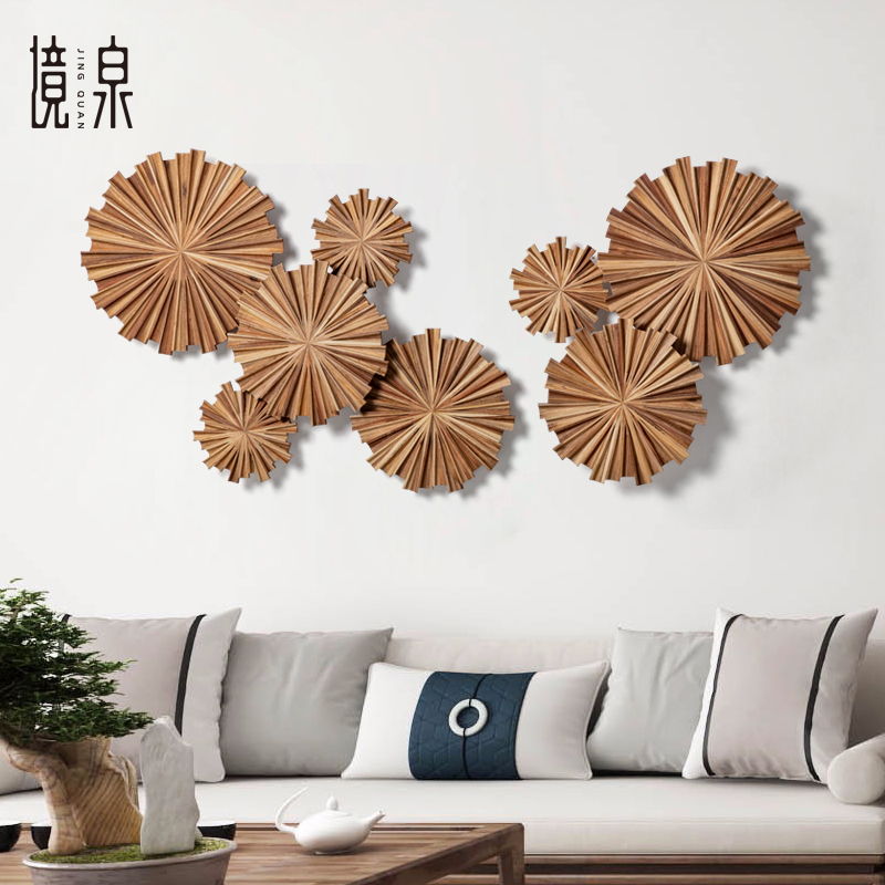 新中式客厅墙面装饰挂件圆形实木墙饰玄关立体壁饰壁挂墙上装饰品