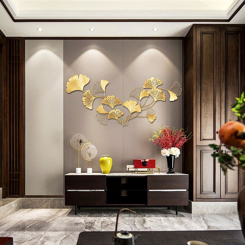 入户玄关银杏叶金属墙壁挂饰立体壁饰铁艺挂件客厅墙面装饰高级感