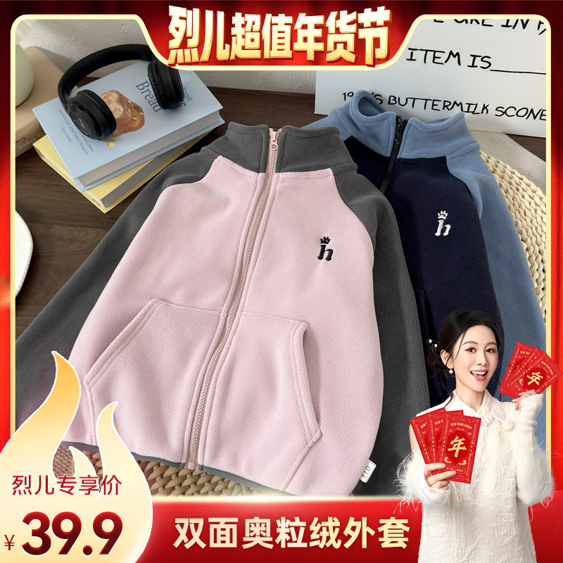 巴拉巴拉童装儿童外套宝宝女童男童新款加绒上衣2025秋冬摇粒绒潮