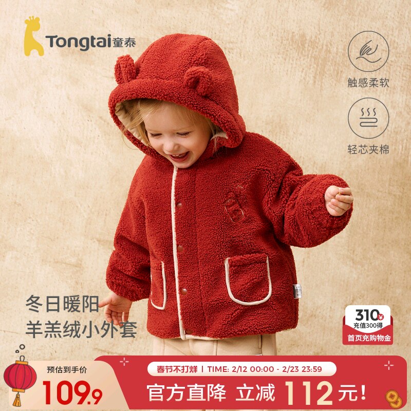 童泰宝宝外套冬季夹棉儿童衣服男童女童外出连帽上衣休闲开衫童装
