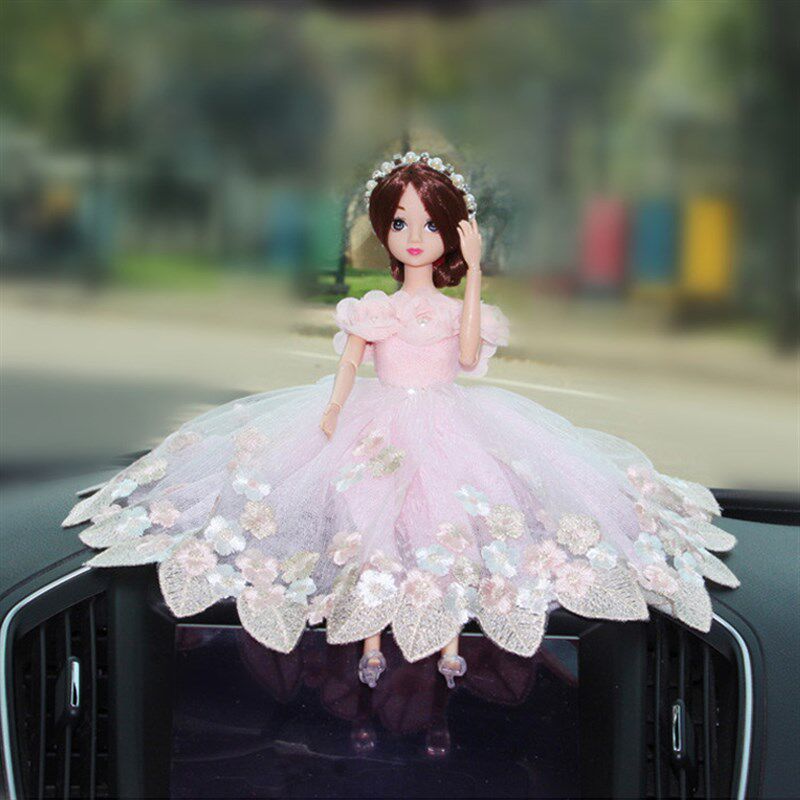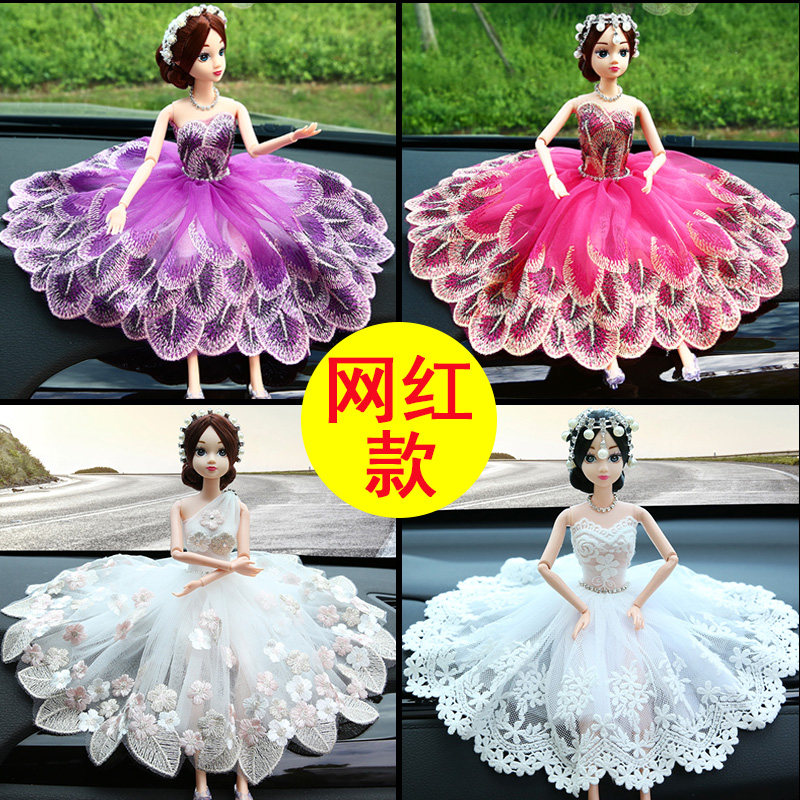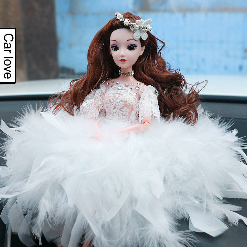女孩高档汽车摆件中控台车内装饰用品羽毛芭必比婚纱公主娃娃礼物