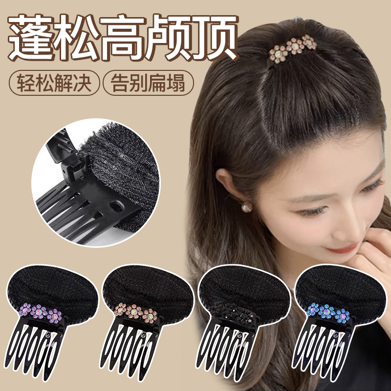 增高颅顶神器女水钻花朵头顶隐形垫发根发片插梳发夹蓬松发卡发垫