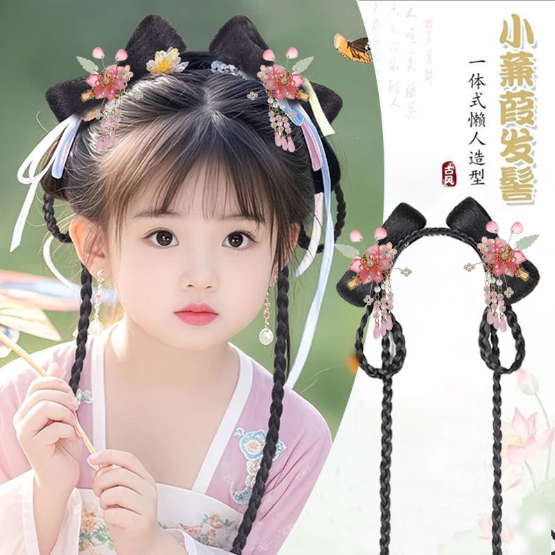 儿童古风汉服假发头饰古装造型女童舞台演出发髻日常盘发垫发发饰
