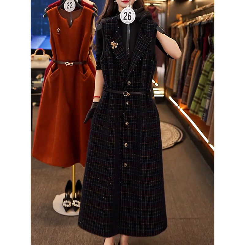 - 毛呢无袖连衣裙 秋冬