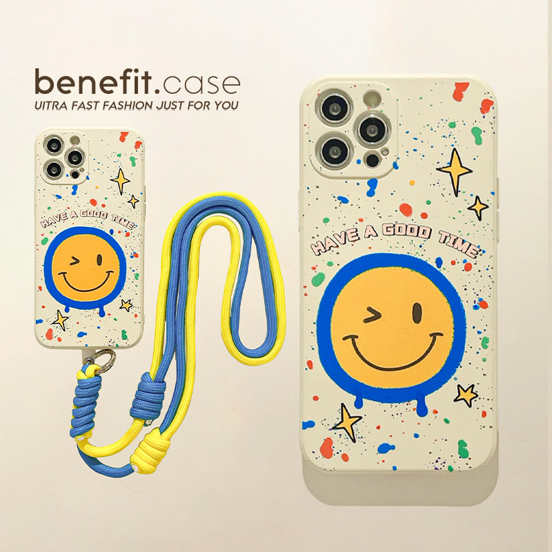 benefit可爱开心笑脸带挂绳适用于iphone16promax苹果15PRO手机壳13新款14套12小众11全包xs硅胶xr防摔8plus7