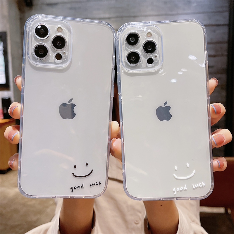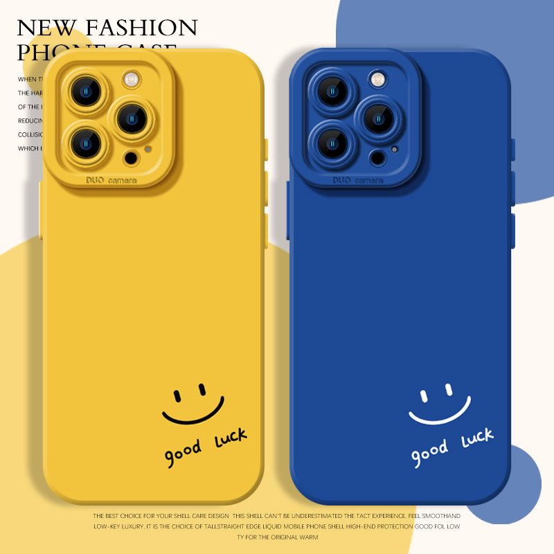 简约goodlucky创意笑脸表情包适用苹果15promax手机壳新款iphone14情侣硅胶软13/12/11/16防摔保护套女7/8/6s