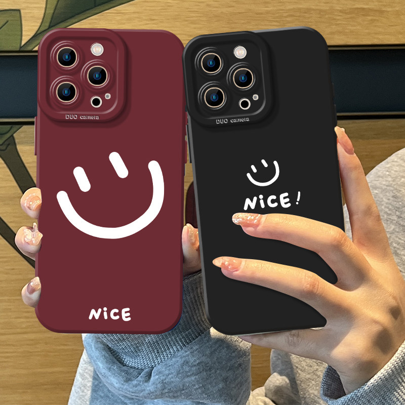 nice笑脸适用苹果15Promax手机壳ins简约iPhone15高级感14pro全包13防摔12pm肤感磨砂11防指纹xs玻璃7/8plus