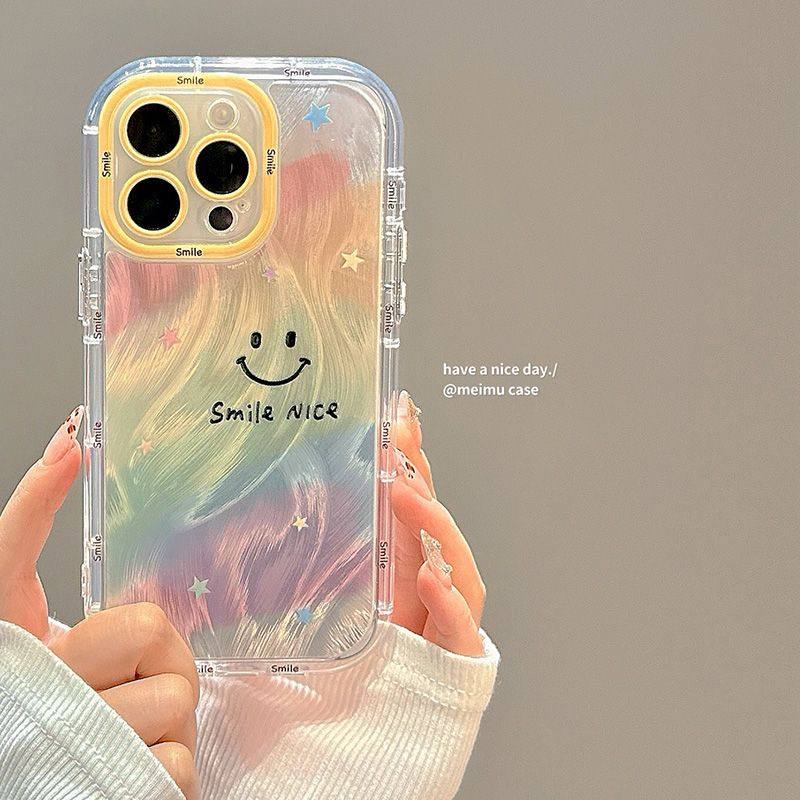 适用苹果16promax手机壳新款iphone15pro多巴胺笑脸14plus彩色13保护套12全包se3高级感x时尚6s情侣7/8玻璃6s