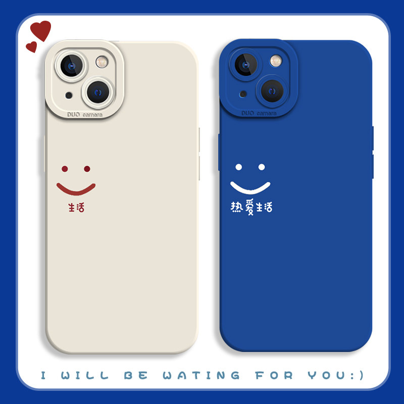 热爱生活手机壳适用于苹果14简约iPhone13新款11promax创意12mini笑脸xr情侣8plus一对7p恩爱xs全包x防摔硅胶