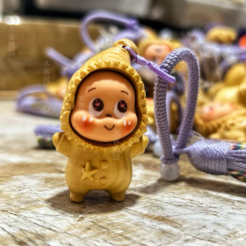黄杨木星星星人卡通公仔饰品流苏手机壳挂件包挂钥匙扣汽车装饰品
