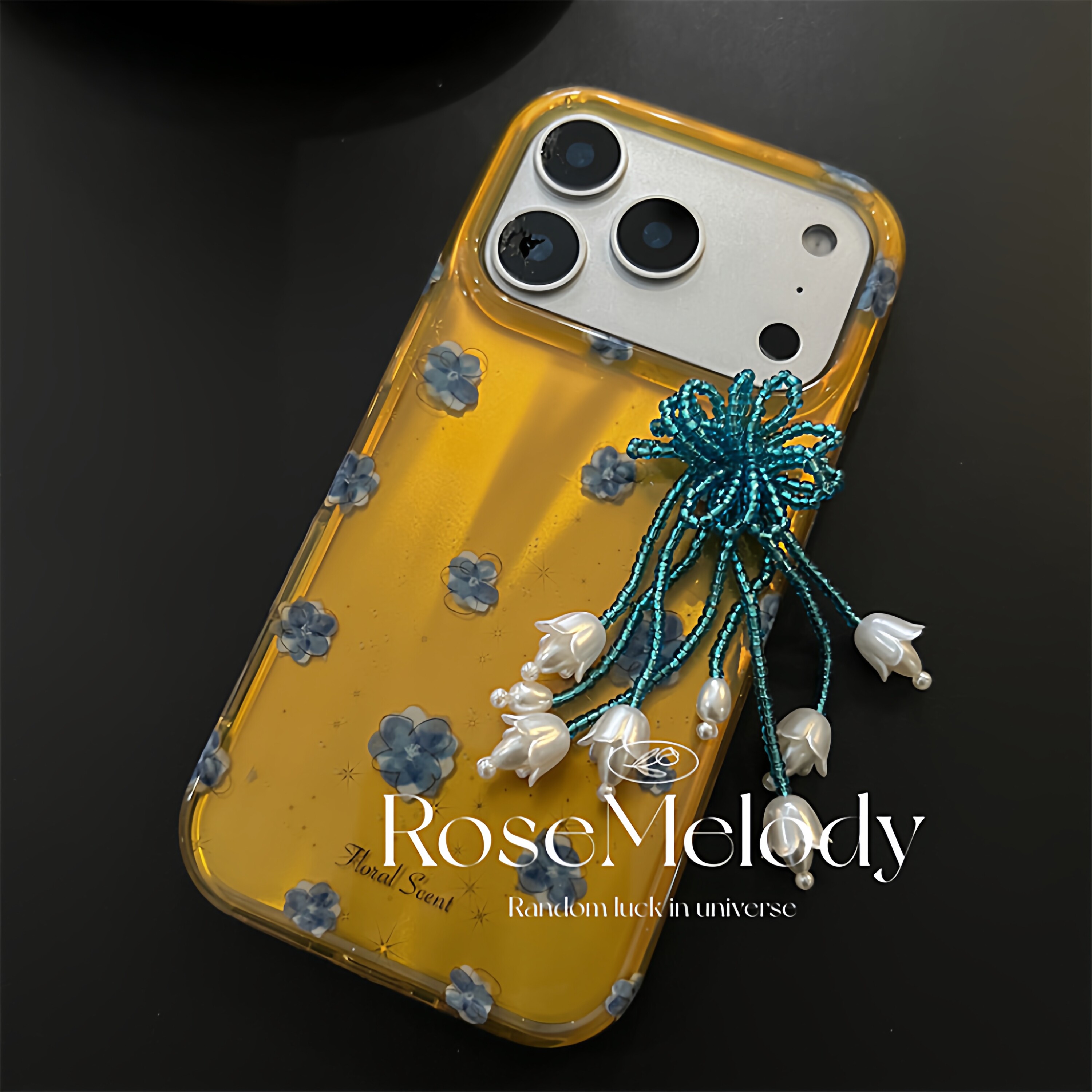 ins秋冬氛围感橙黄小碎花适用iPhone17promax手机壳苹果16promax蓝色铃兰花流苏15pro气质女款14高级双层防摔