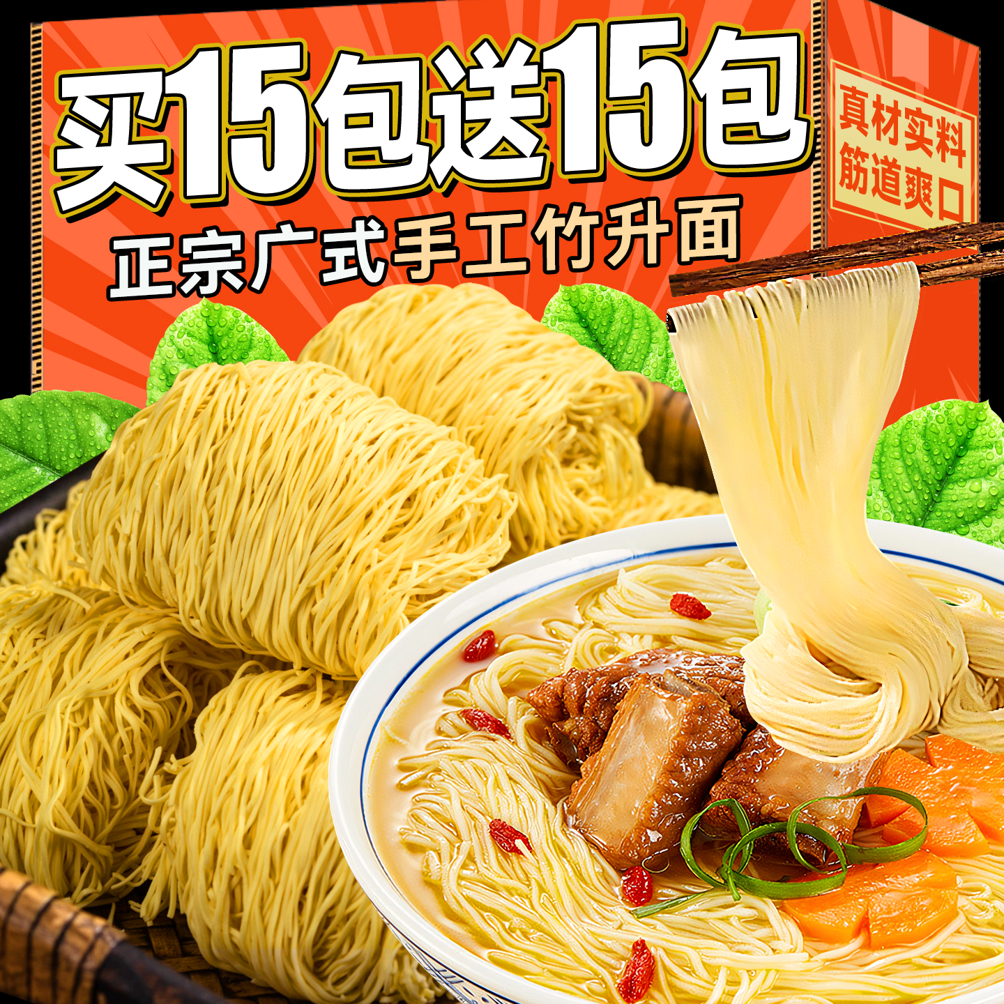 竹升面广式正宗手工生面非油炸港式传统云吞面速食面条一箱整箱发