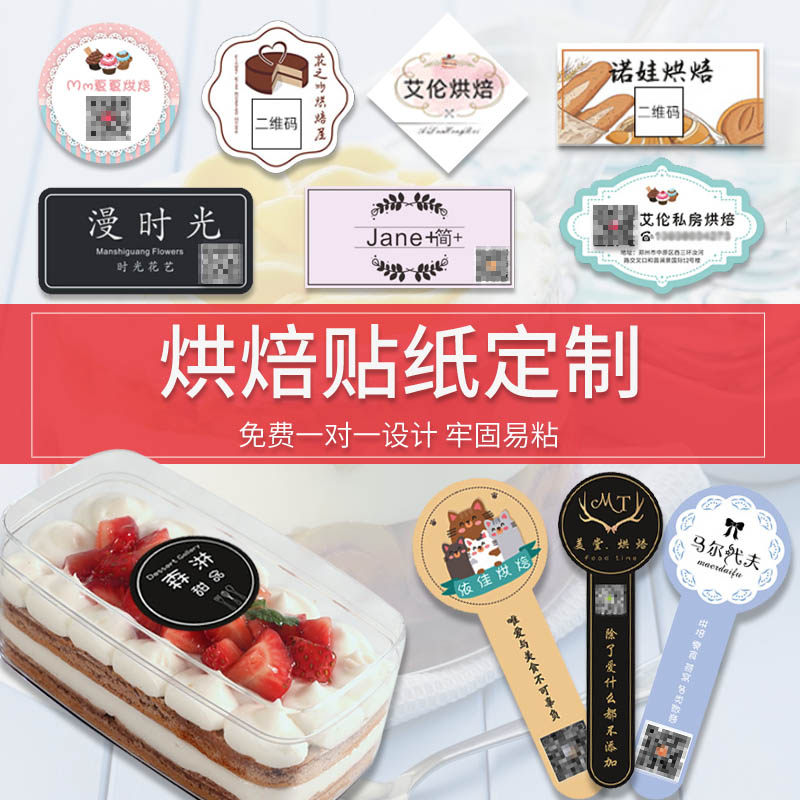 蛋糕二维码贴纸定做烘焙店logo标签甜品盒子封口贴店名不干胶定制