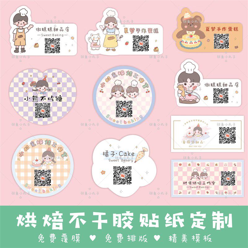 蛋糕甜品店不干胶定制烘焙封口贴可爱二维码贴纸定做logo标签印刷