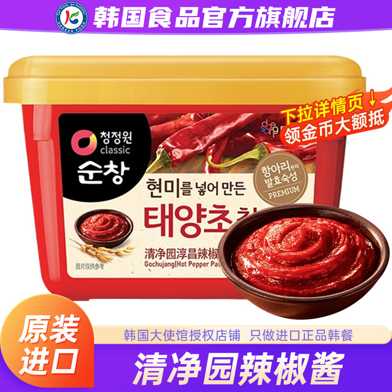 韩国进口清净园淳昌辣椒酱500g韩式辣酱正宗年糕石锅拌饭酱下饭酱