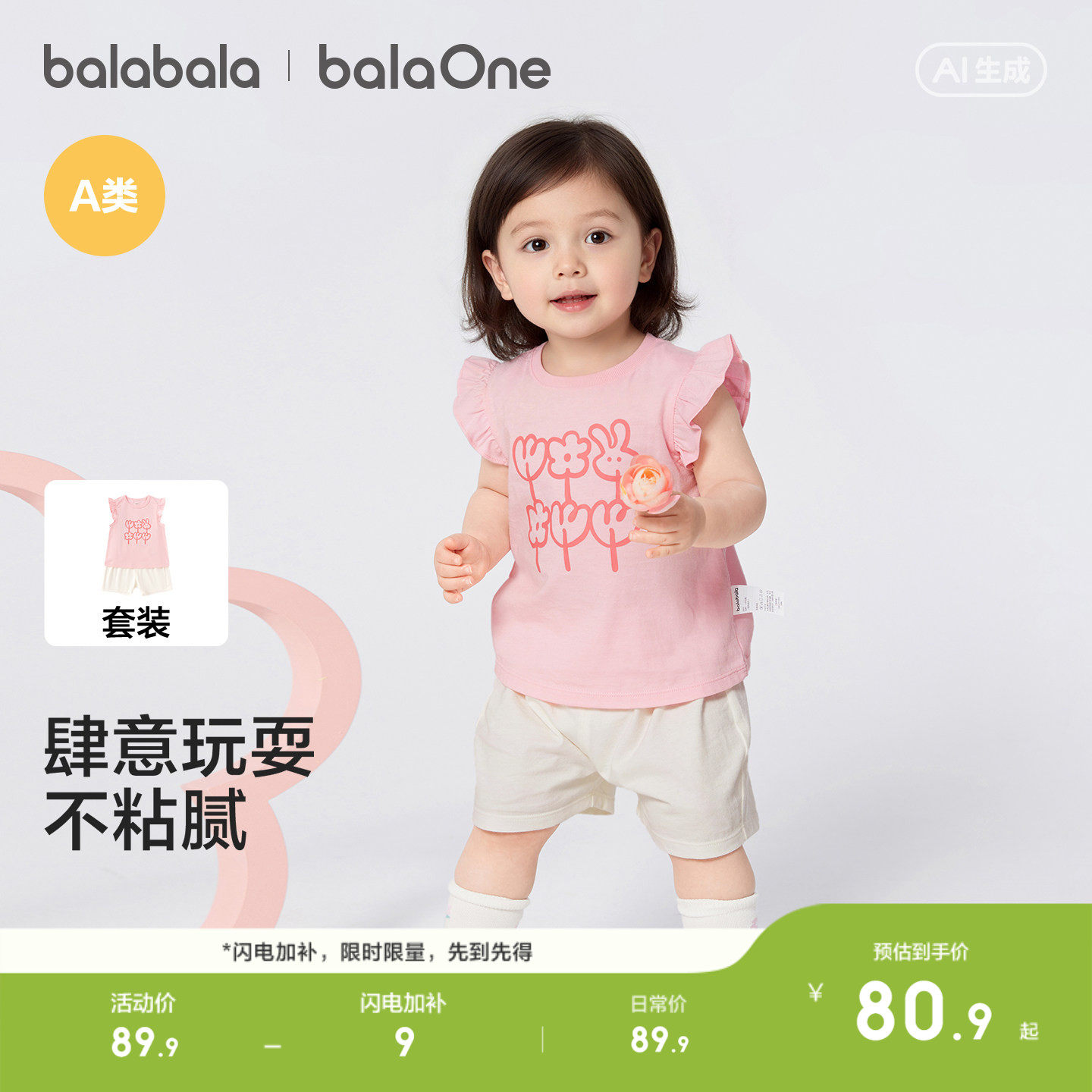 [棉感速干]迷你巴拉巴拉套装男女童儿童婴儿衣服短袖长裤夏季新款