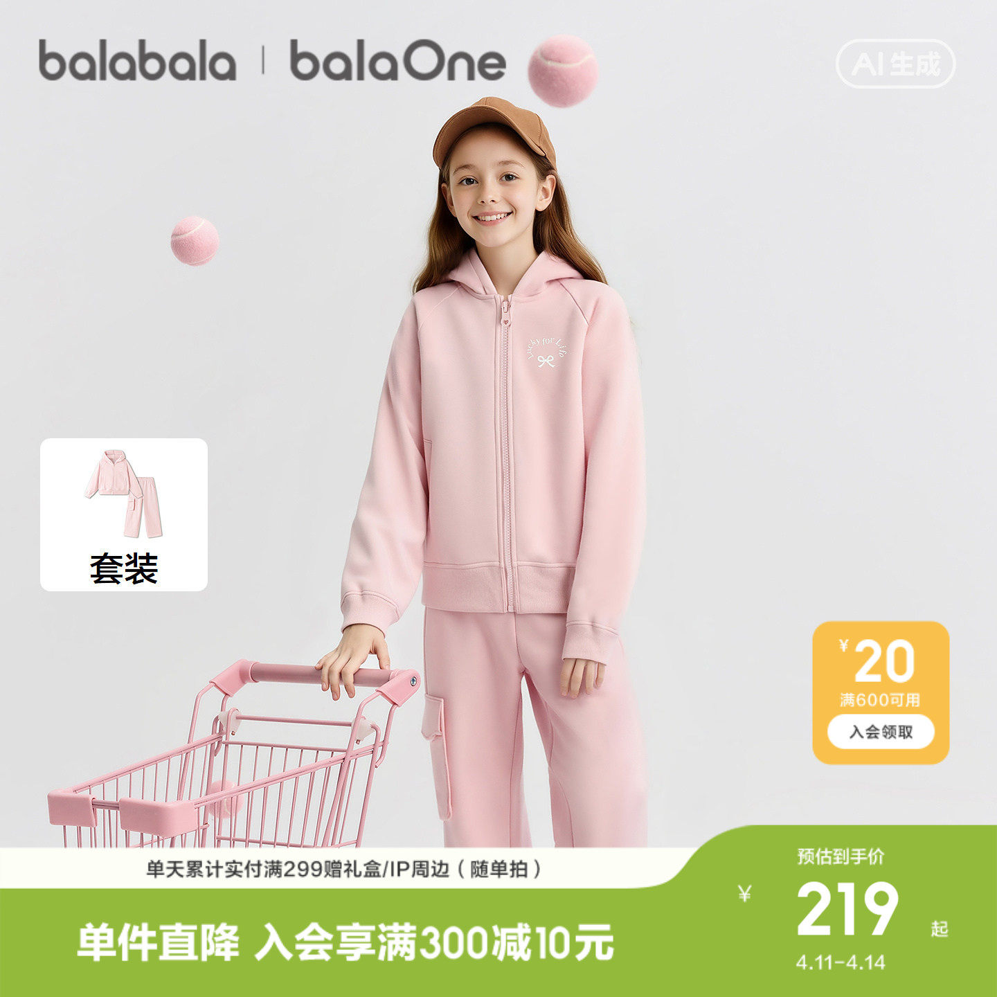 [暖暖天鹅绒]马克珍妮女童柔软省心运动卫衣套装2026年春装551538
