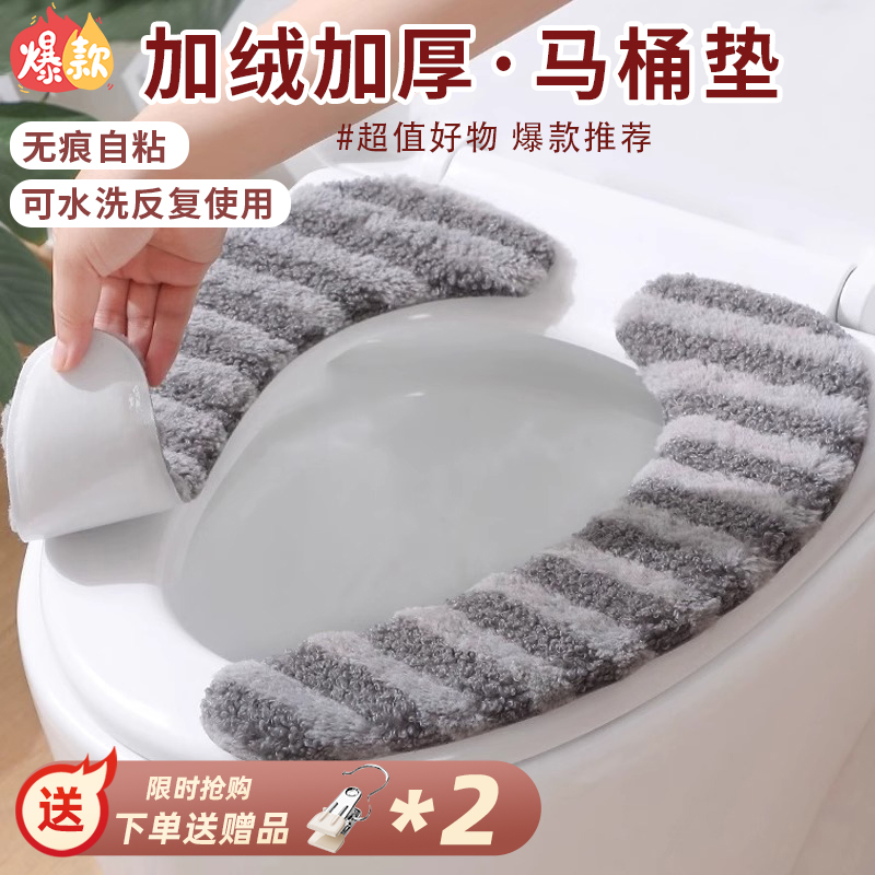马桶坐垫子冬季2025新款坐便器套座垫圈厕所冬天粘贴式座圈秋加绒
