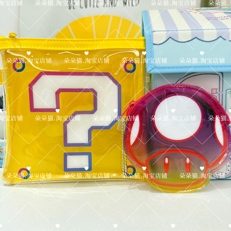 日系大阪环球影城马里奥PVC化妆包卡通可爱蘑菇问号收纳包2件套