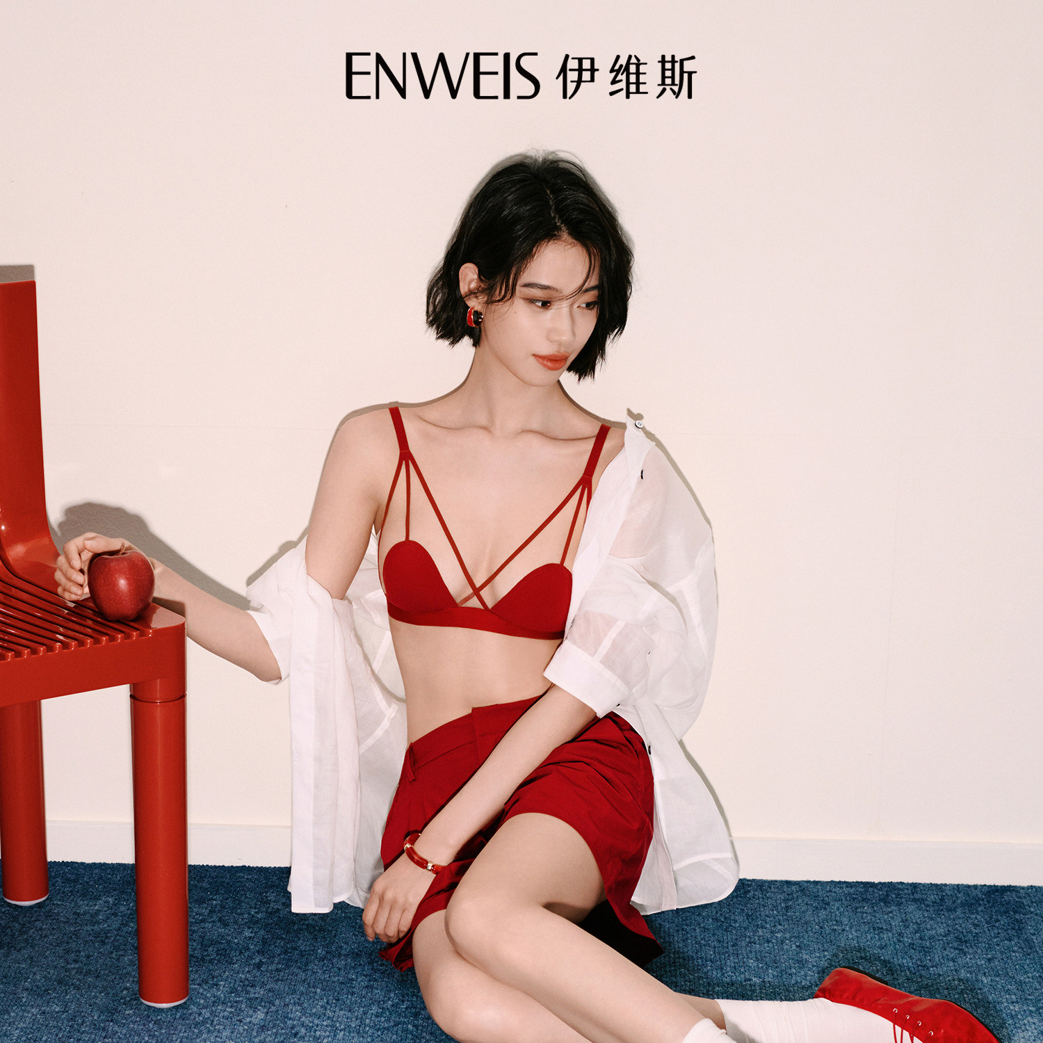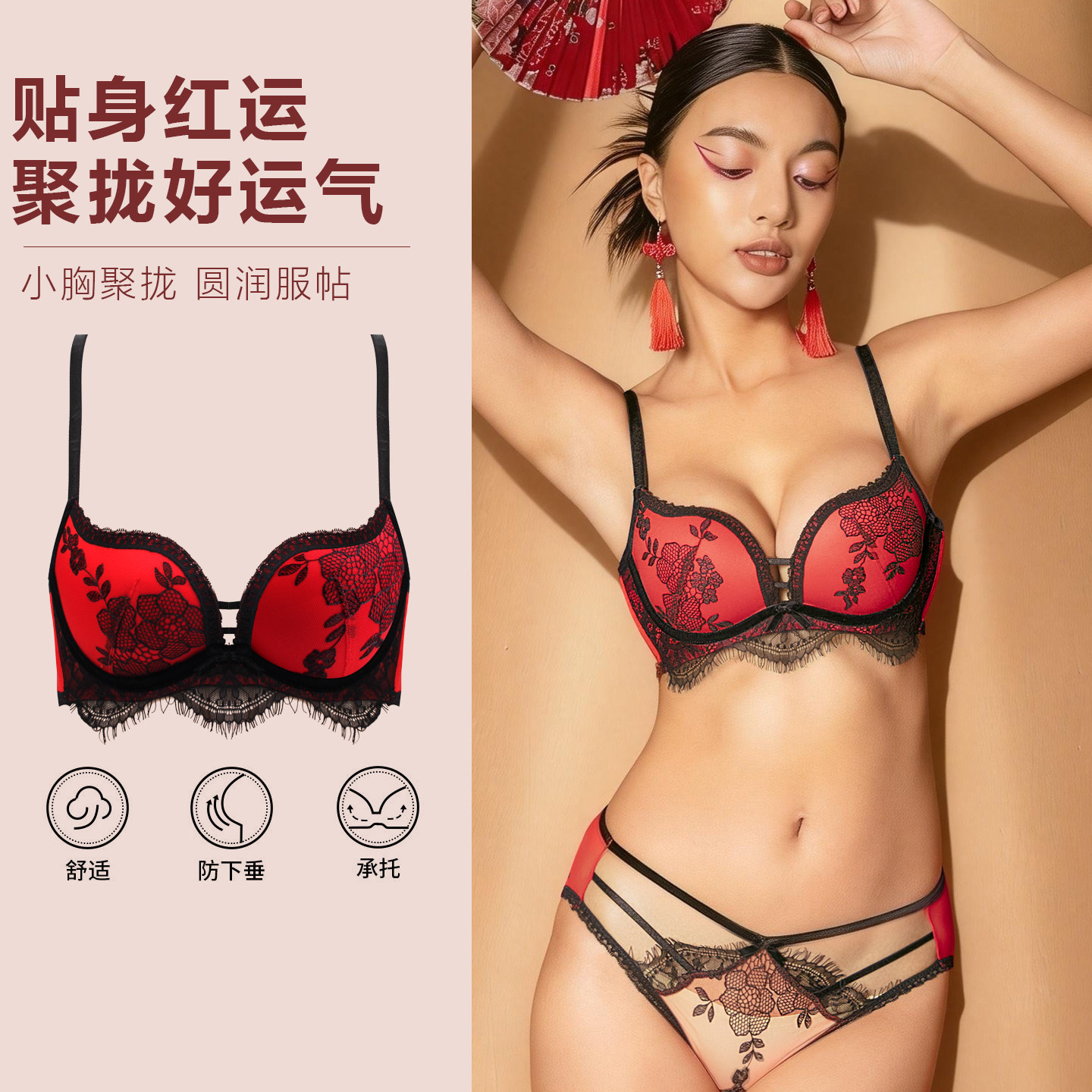 - 红内衣套装女