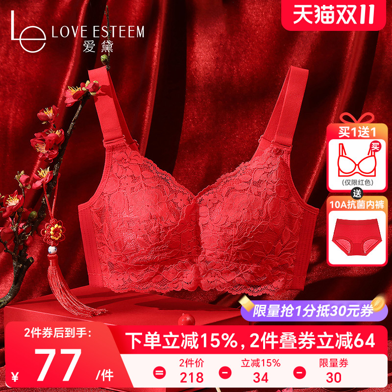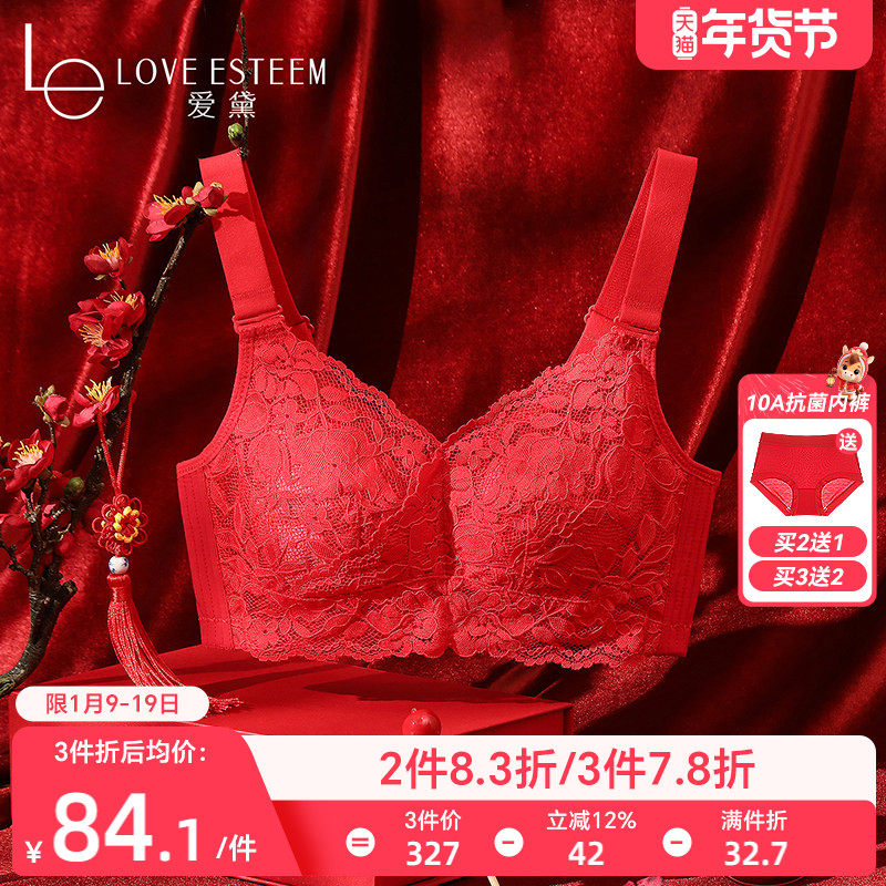 【中女时代】伊维斯红色内衣女本命年无钢圈聚拢蕾丝文胸结婚礼物