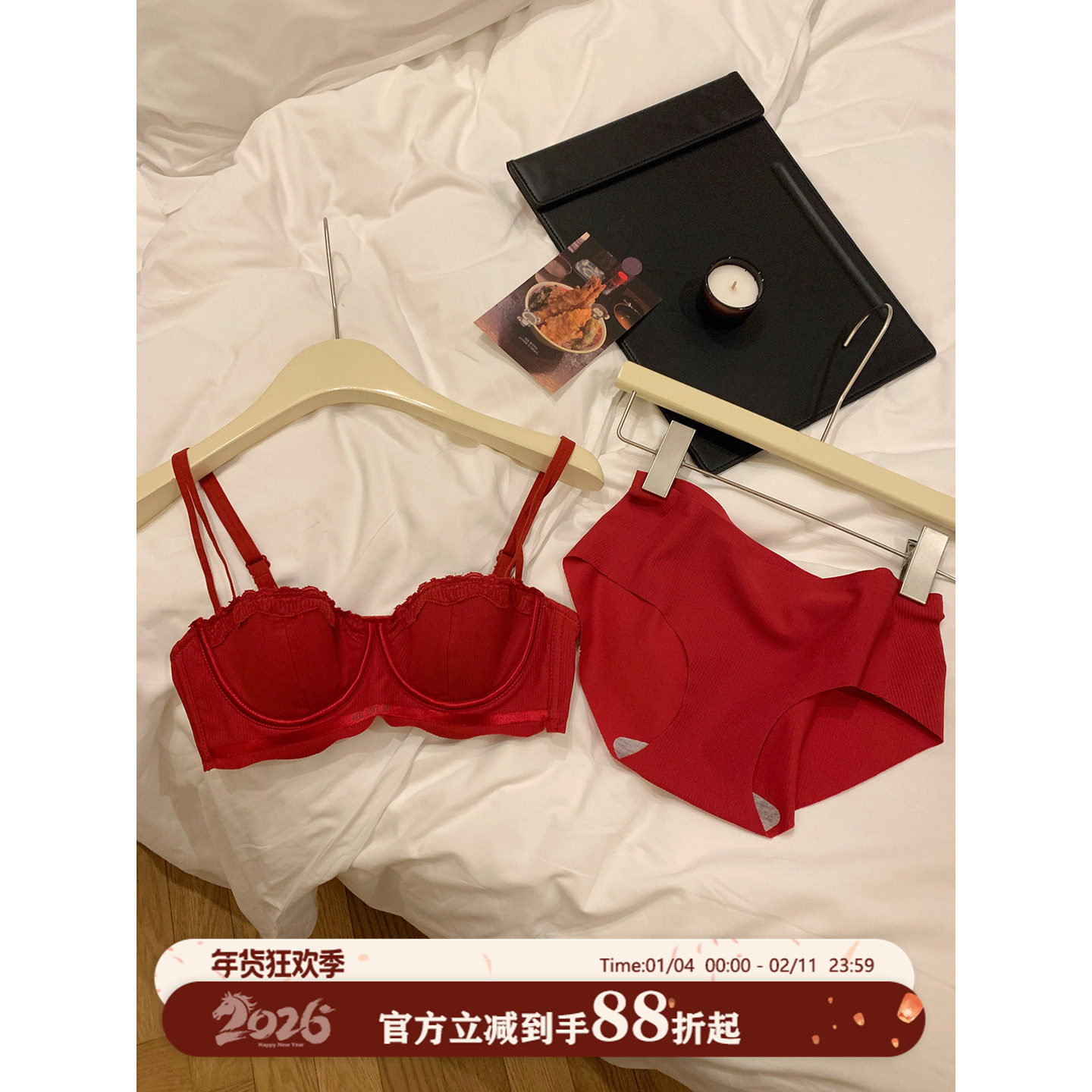 红色本命年内衣内裤套装女2026马年新款礼盒结婚新娘小胸聚拢文胸