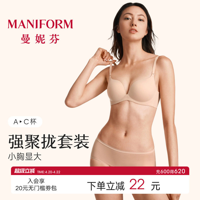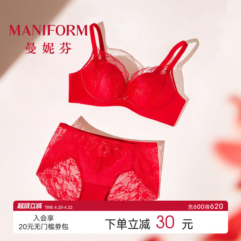 曼妮芬小胸聚拢文胸内裤性感无痕内衣女舒适无钢圈本命年服红套装