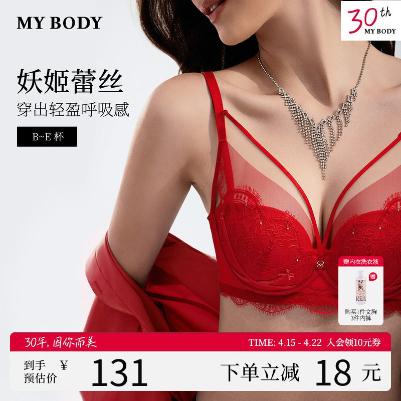 【妖姬】MYBODY商场同款本命年红色内衣大胸显小性感蕾丝文胸胸罩