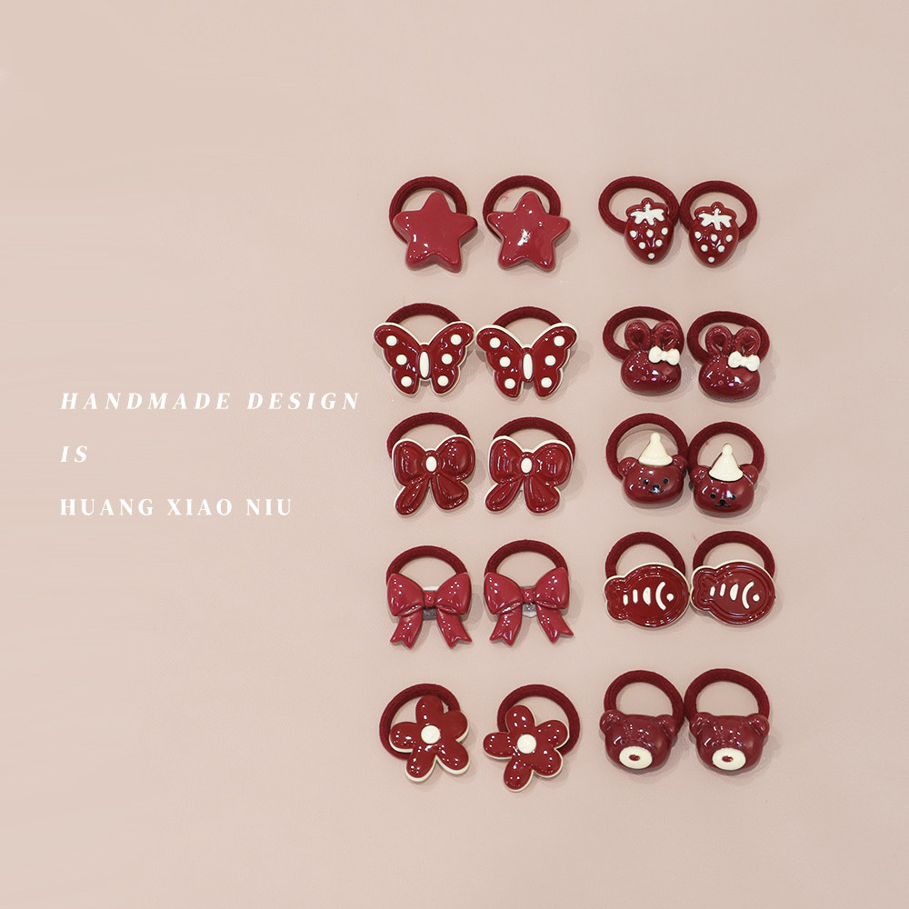 黄小妞安可拉红新年女宝宝皮筋不伤发蝴蝶结发绳韩系婴儿发圈发饰