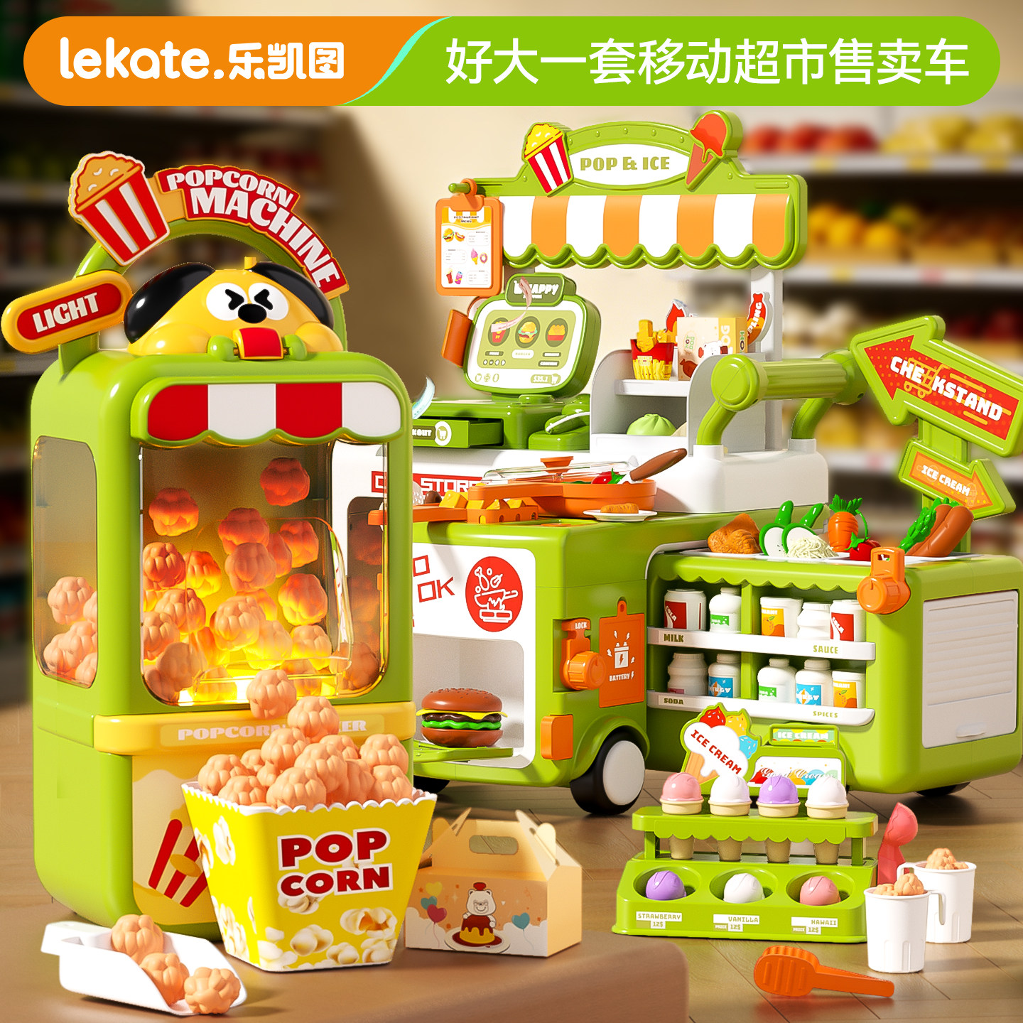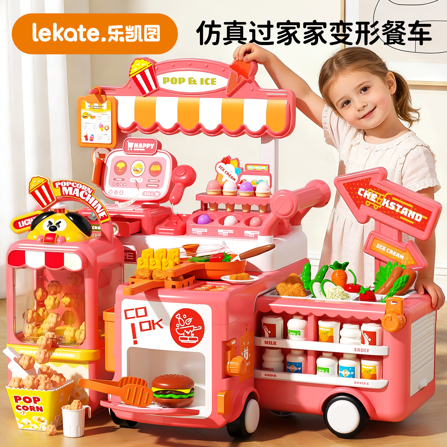 儿童厨房做饭过家家小女孩冰淇淋玩具车雪糕冰激凌3岁4超市收银台