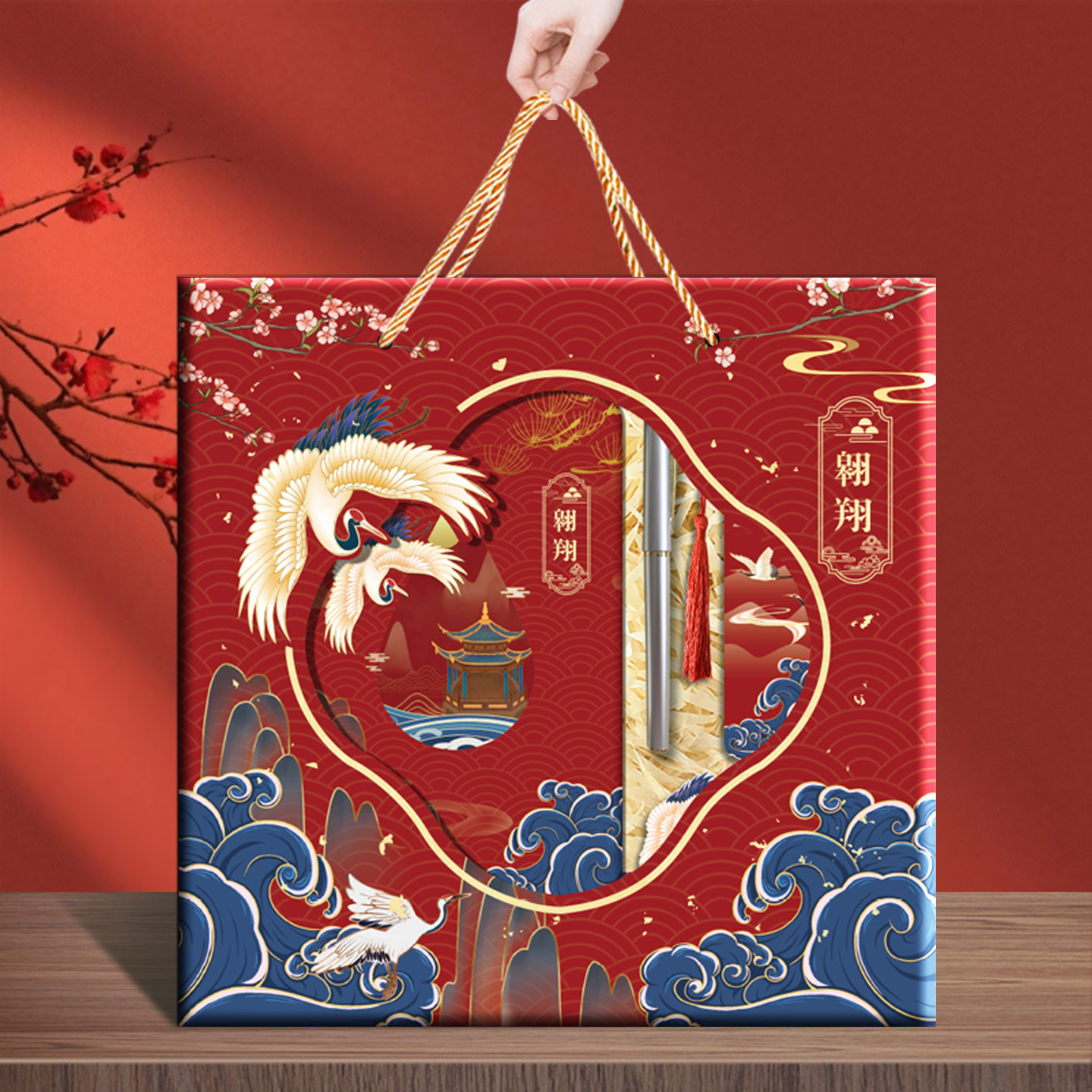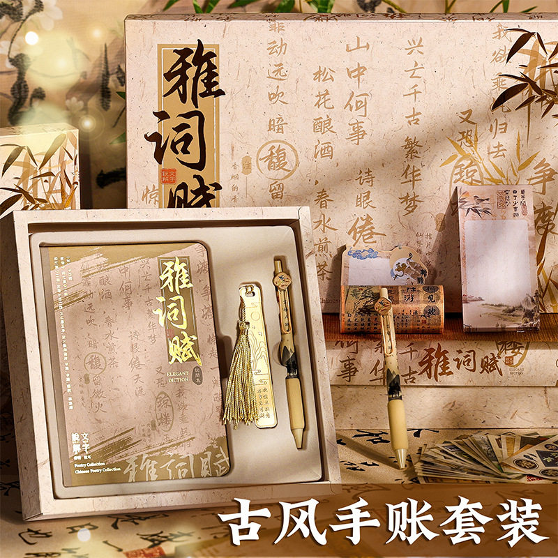 大角色笔记本套装礼盒仙鹤鸣古典中国风本子送学生励志文字礼品奖励礼物国潮古风本子和笔带书签袋子手提套盒