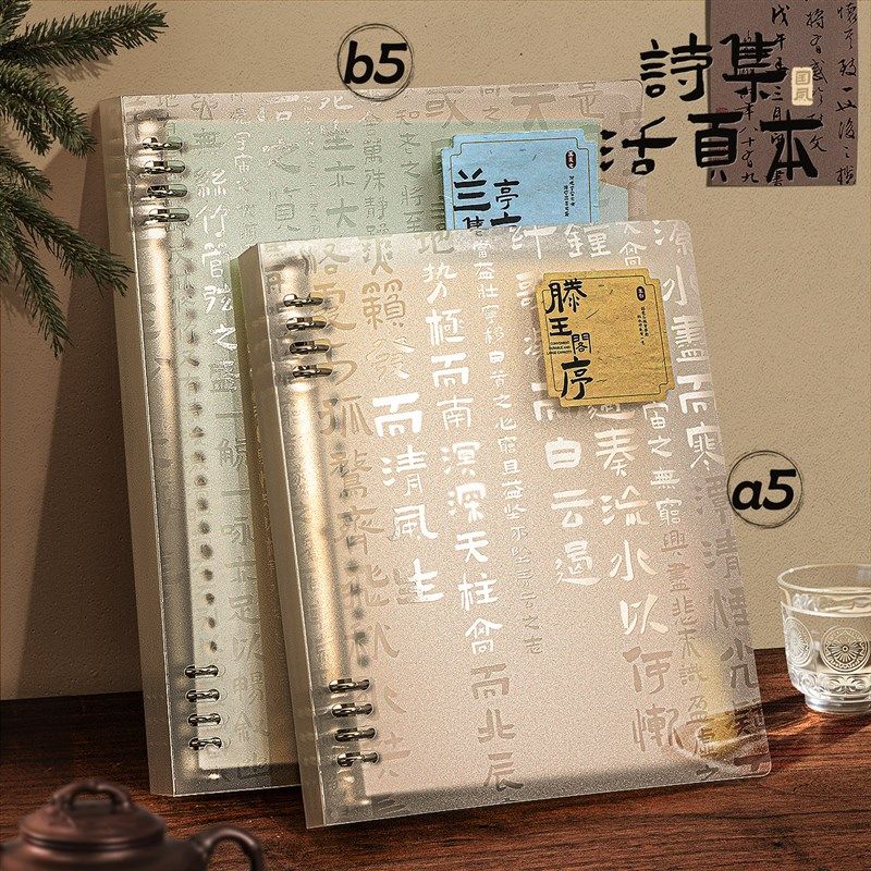 新中式国风活页本b5不硌手笔记本可拆卸金属线圈本高颜值古风本子日记事本滕王阁序学生pp外壳复古横线记录本