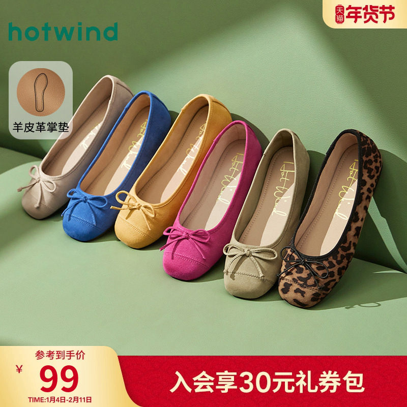热风平底单鞋女款2025年夏季新款浅口方头休闲女鞋纯色百搭鞋子