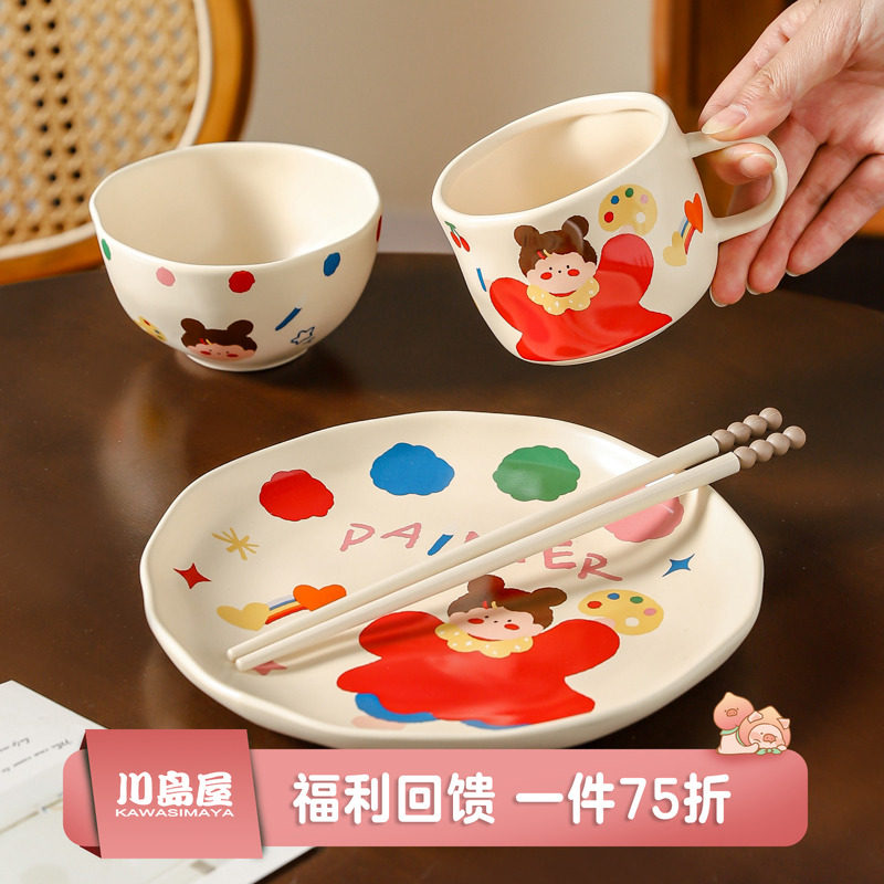 可爱卡通陶瓷碗釉下彩家用高颜值餐具套装米饭碗面碗菜盘餐盘碟子