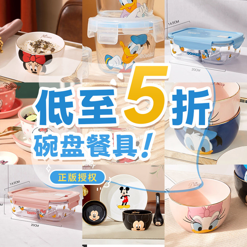 川岛屋迪士尼草莓熊餐具卡通陶瓷碗家用儿童可爱饭碗汤碗面碗盘子