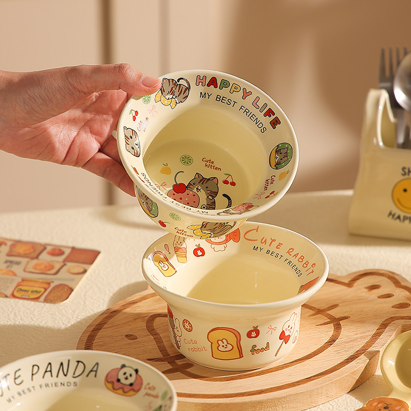 卡通陶瓷碗家用特别好看的沙拉碗儿童可爱米饭碗甜品碗高级感新款