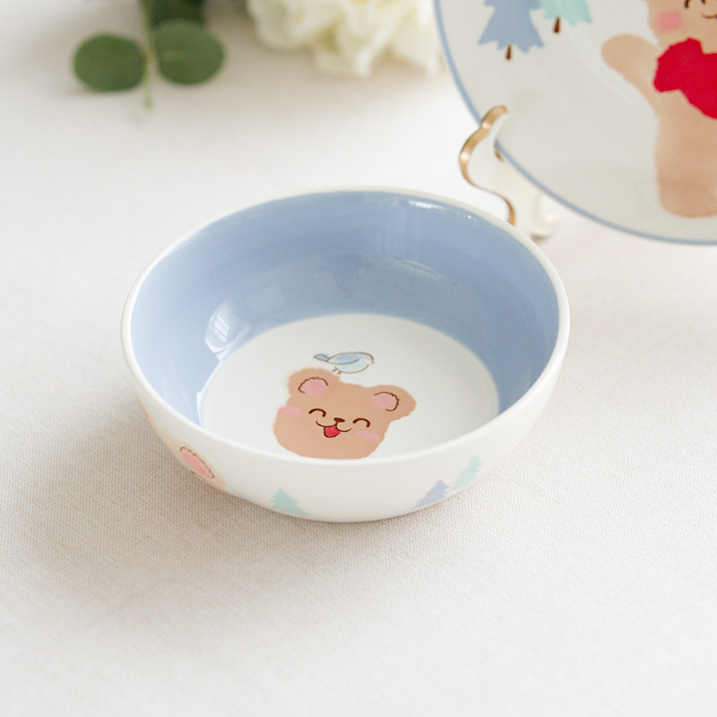 创意萌熊卡通陶瓷碗盘餐具套装家用儿童可爱饭碗菜盘子学生一人食