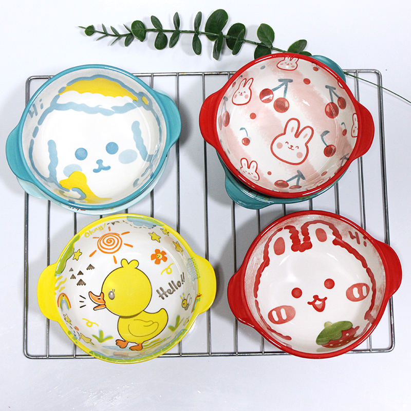 釉下彩卡通陶瓷碗泡面碗可爱米饭碗手柄碗家用2024新款网红碗餐具