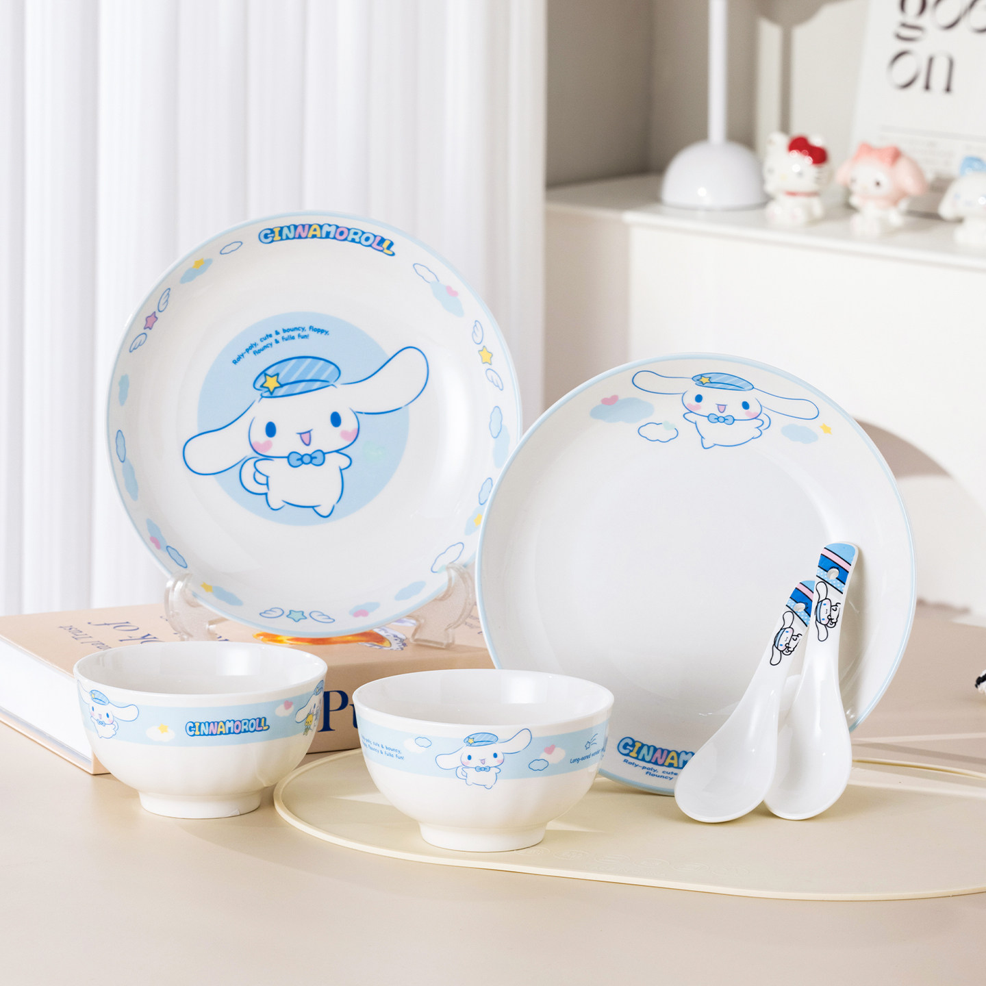 HelloKitty卡通陶瓷碗盘组合女生家用可爱餐具套装儿童高颜值饭碗