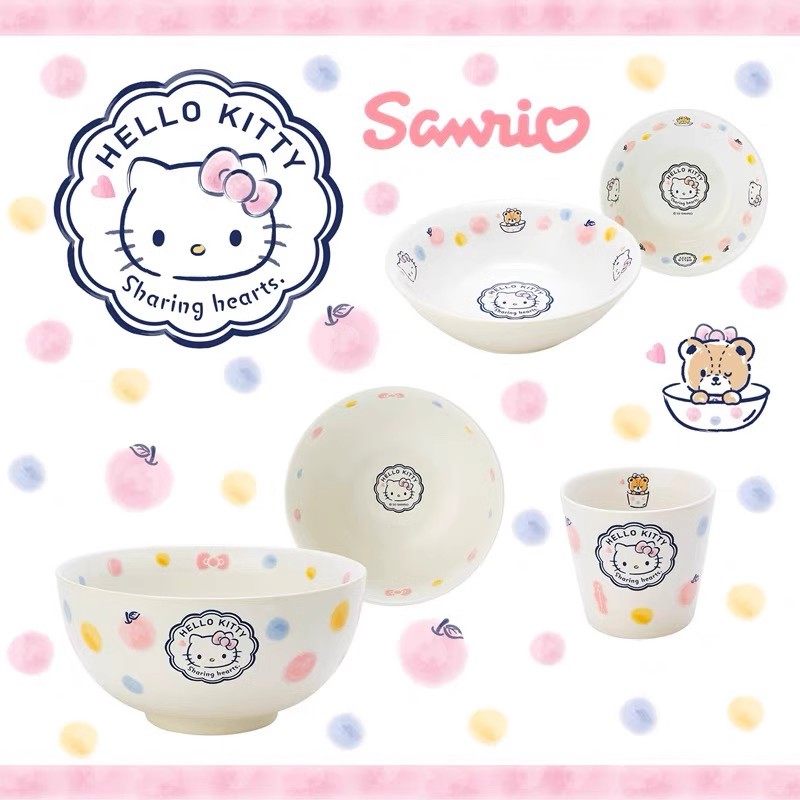 三丽鸥日本正版Kitty帕恰玉桂狗人鱼汉顿卡通陶瓷碗茶杯日本带回