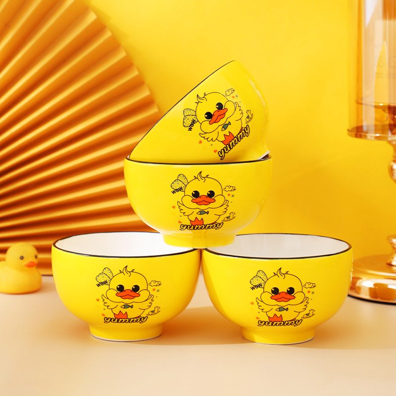 小黄鸭碗家用可爱少女心儿童卡通陶瓷碗黄色创意个性吃饭餐具套装