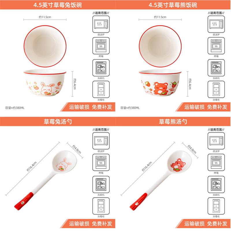 釉下彩卡通陶瓷碗勺装家用餐具可爱米饭碗网红高颜值一人食吃饭碗